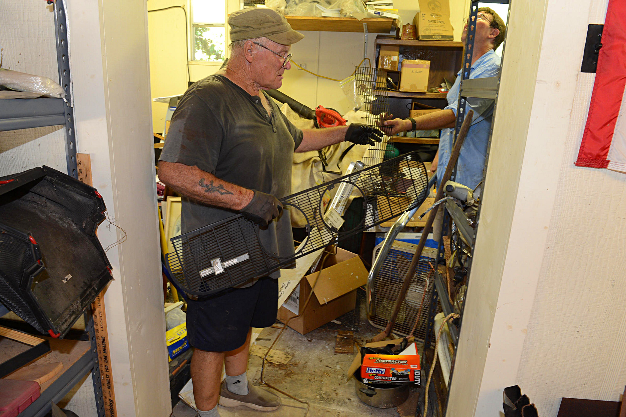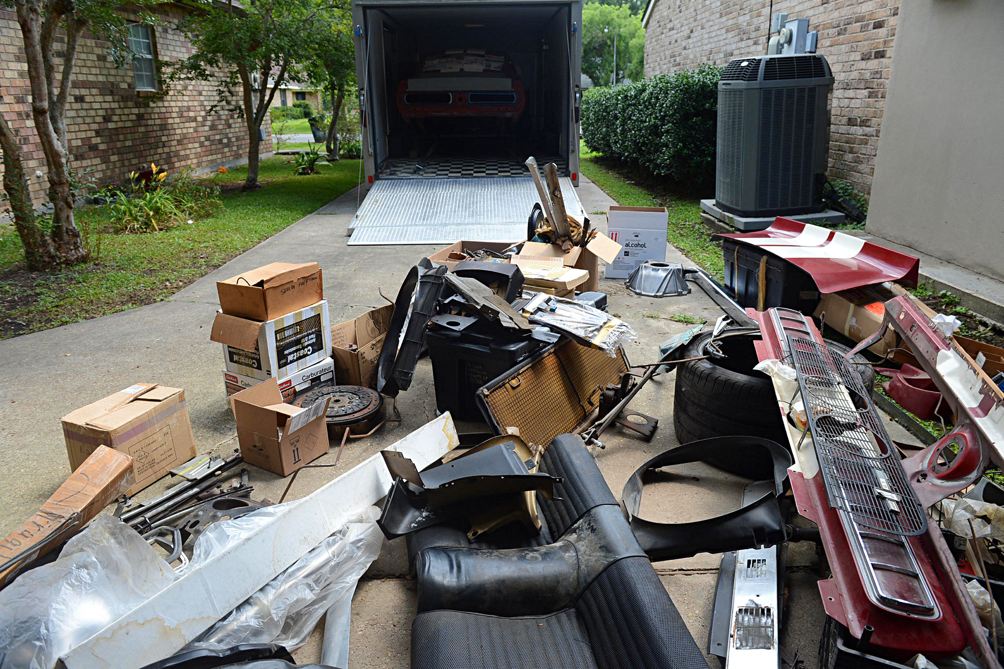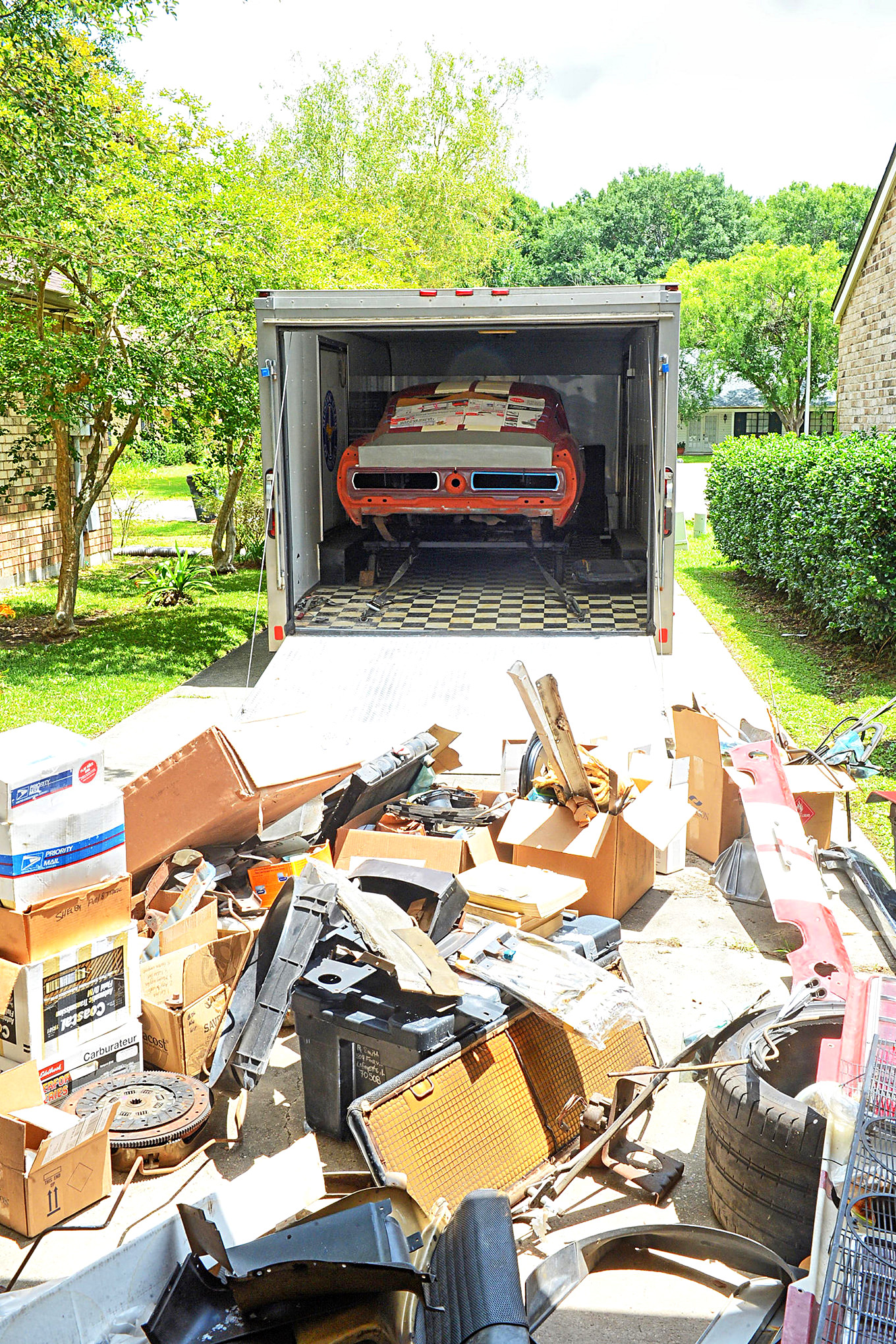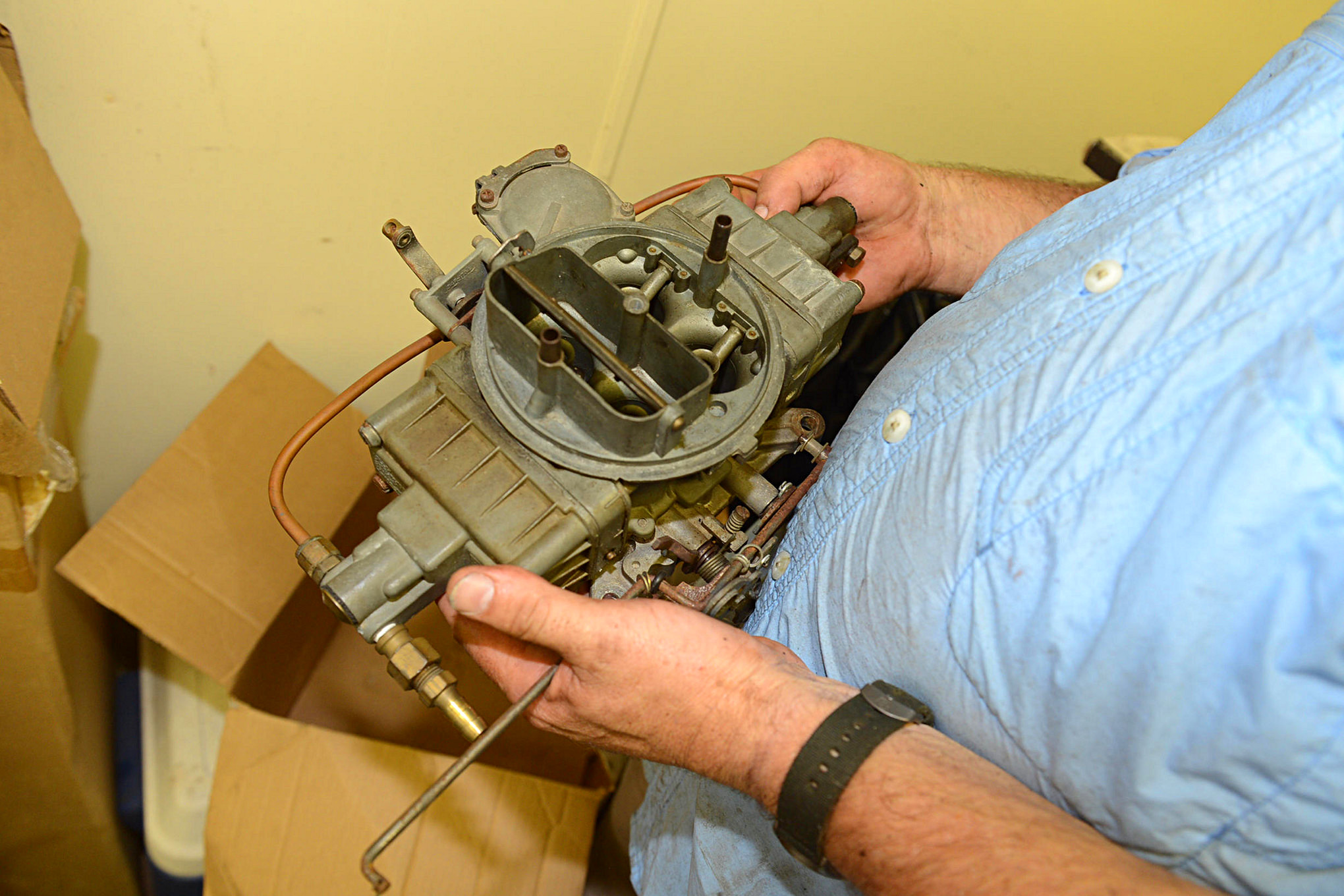 “It’s the reason I’m alive,” Shane said, referring to the ’70s stock 250 six-cylinder. “If it had been a V-8, I probably would have died because I drove it hard, even then.” He still has the convertible, parked on jackstands in his hobby building. As we waited in that shop his father, Ken, showed up, followed by Mike Hill, Ken’s neighbor who is a retired sea captain and helps out when needed. “Every box we open is going to be a new prize,” Hill said. He had been along for the initial viewing with Shane and Ken.